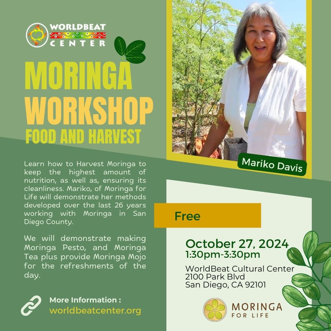 Learn how to Harvest Moringa to keep the highest amount of nutrition, as well as, ensuring its cleanliness. Mariko, of Moringa for Life will demonstrate her methods developed over the last 26 years working with Moringa in San Diego County.