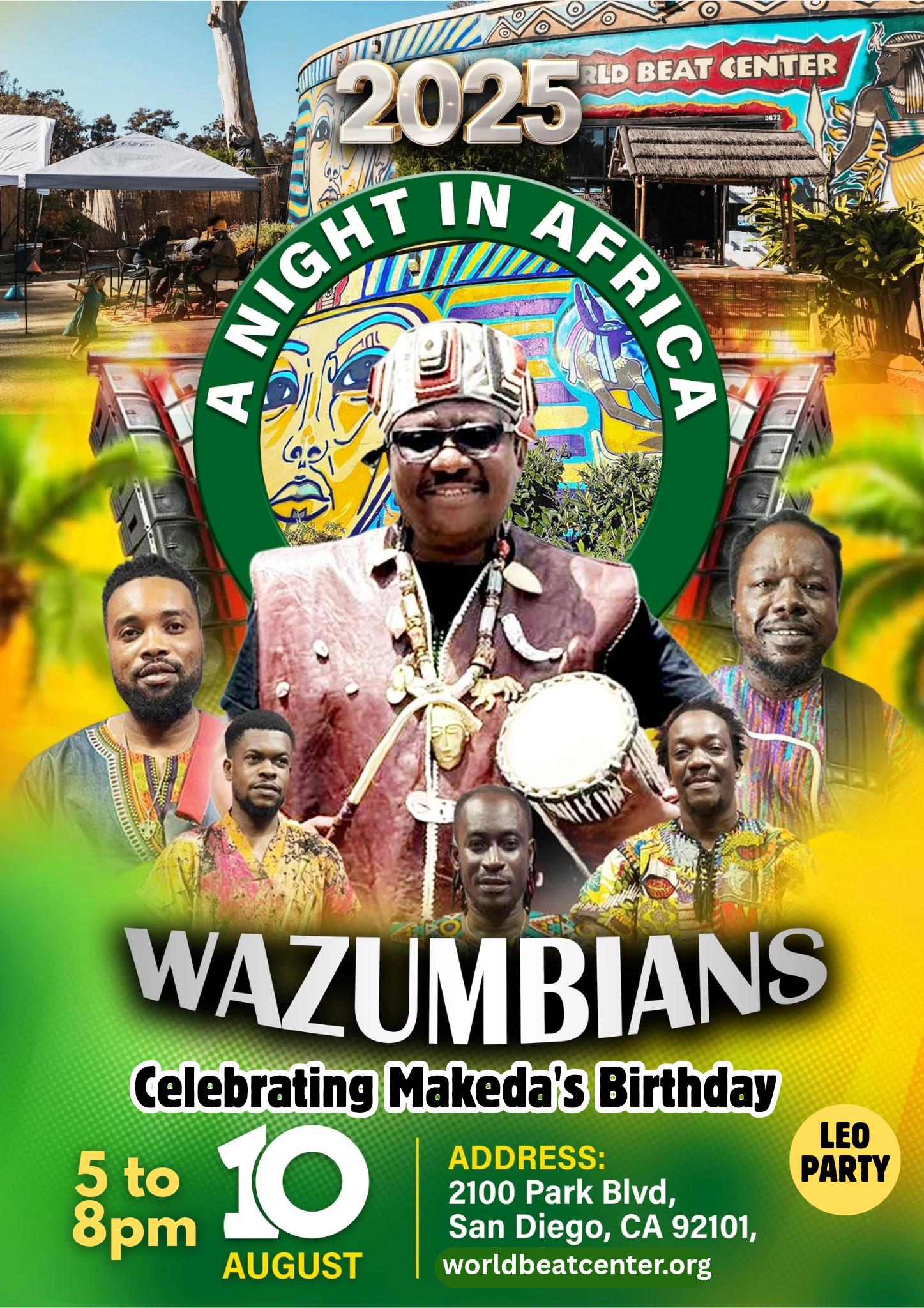 Join us for A Night in Africa—an unforgettable evening celebrating Experience the electrifying sounds of Wazumbians, a dynamic Afro-fusion band hailing from Ghana known for blending traditional West African rhythms with funk, reggae, and highlife.