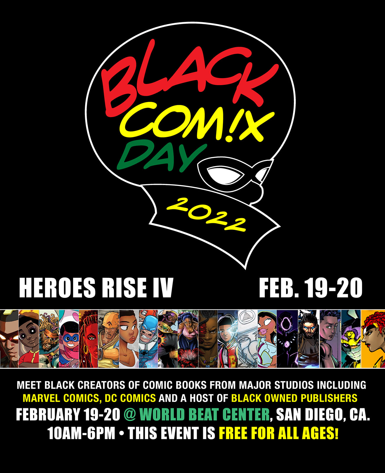 BCD returns to World Beat Center, Balboa Park, San Diego, CA on February 19-20 (Sat-Sun)! This event is FREEto the public and open between 10am-6pm. Come and meet professional Black Artists & Writers in the comic book industry including creators from Marvel Comics, DC Comics, Image Comics and a host of Black Owned Independent Publishers! There will also be Interactive Games and Activities in our Kids Zone. Outside of the main exhibitors floor there will be two featured panels: Sat. Feb. 19th, 1pm will be a discussion on the challenges of doing “Black Business Today”. Sun. Feb. 20th, 1pm will be a discussion with “Black Women In Comics”, concerning their challenges and triumphs in todays climate. Don’t miss this FANTASTIC family friendly event, celebrating Black Culture in the world of Comic Books!