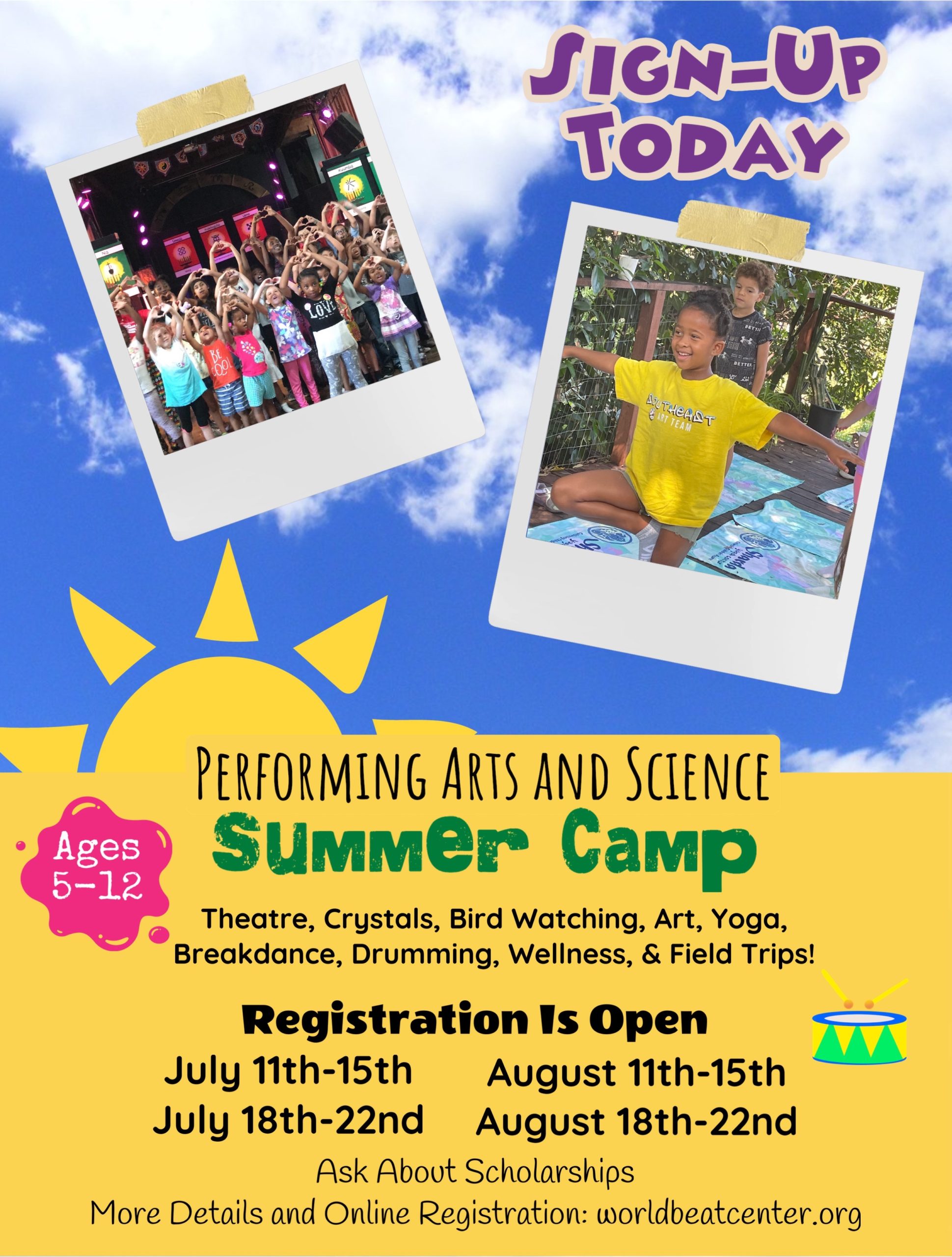 *Snacks will be provided by WorldBeat Center and parents are responsible for providing campers with lunch.