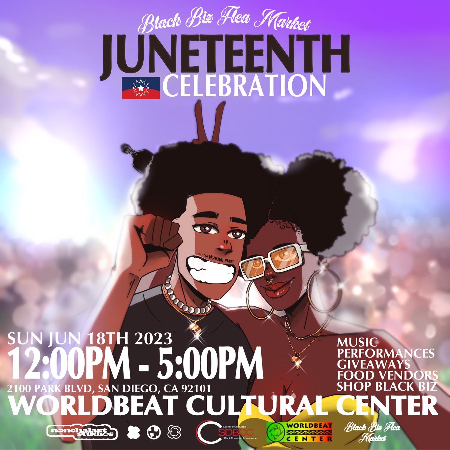 Black Biz Flea Market’s Juneteenth Celebration will highlight Black-owned business and local Black artists all at the heart of Downtown San Diego — the WorldBeat Cultural Center!
