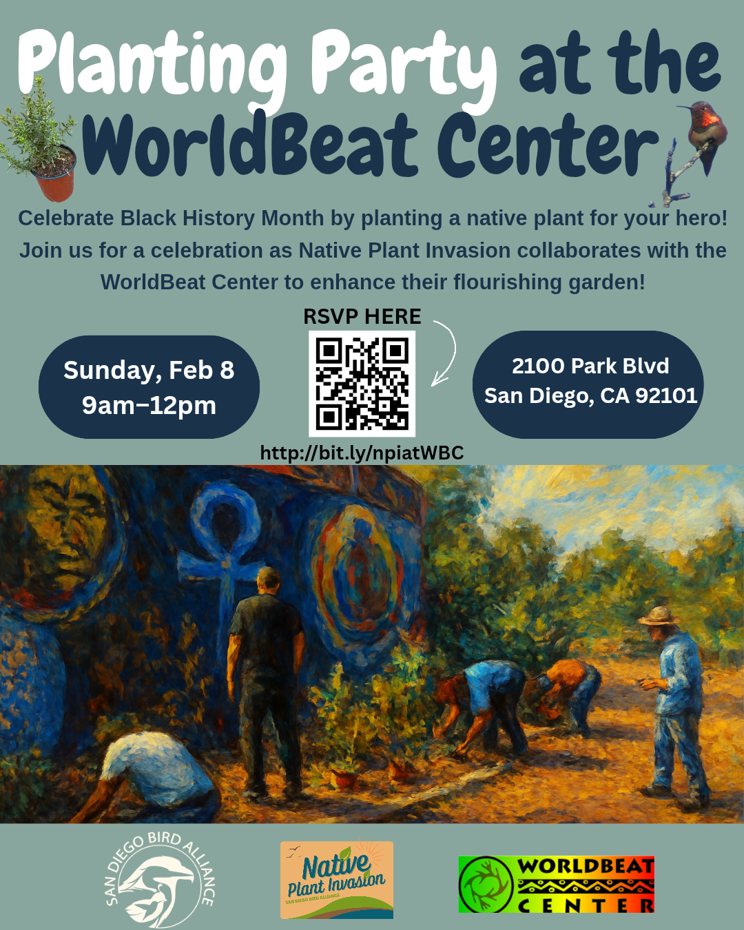 Celebrate Black History Month by planting a native plant for your hero! Join us for a community planting celebration as Native Plant Invasion collaborates with the WorldBeat Center to enhance their flourishing garden.