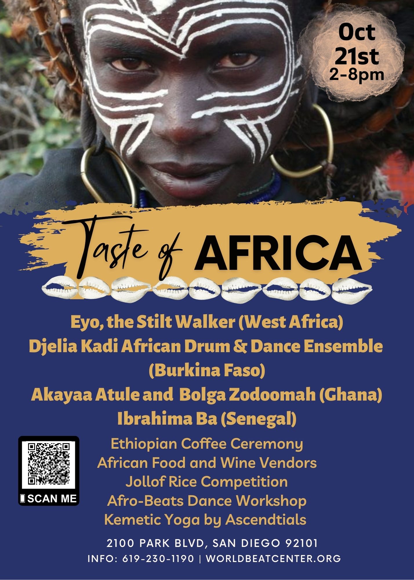 Travel the world through taste and support San Diego’s local restaurants and caterers with food from Nigeria, Ethiopia, Sudan and Liberia. Also try wine from Ethiopia and Nigeria. Food and drinks sold separately by each vendor.